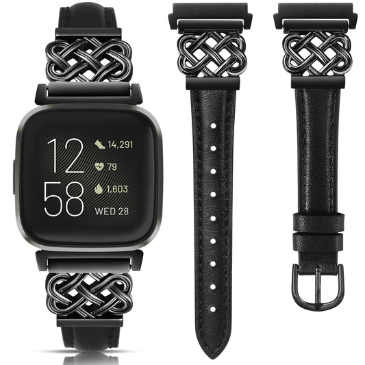 TOYOUTHS Celtic Knot Leather Band Compatible with Fitbit Versa 2/Versa/Versa Lite/SE Band Women, Slim Dressy Thin Designer Premium Leather Strap with Interlock Buckle for Fitbit Versa 2 Smartwatch