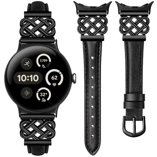 TOYOUTHS Celtic Knot Leather Band Compatible with Google Pixel Watch 3 41mm/Pixel Watch 2/Pixel Watch 1 Band Women, Slim Dressy Thin Fashion Designer Premium Leather Strap for Pixel 3 2 1 Smartwatch