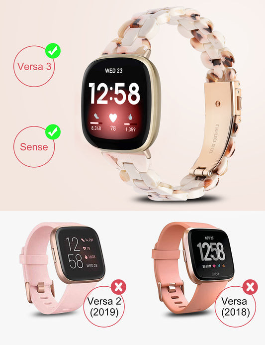 TOYOUTHS Slim Cute Resin Bands Compatible with Fitbit Sense Bands Women, Lightweight Thin Sense Watch Bands Dressy Bracelets Elegant Accessories for Fitbit Versa 3 Bands Women