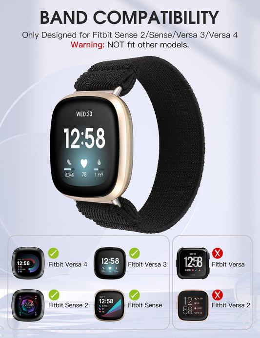 TOYOUTHS Compatible with Fitbit Sense/Sense 2 Band/Versa 3/Versa 4 Bands Women Men Dressy Elastic Nylon Fabric Strap Stretchy Solo Loop Sport Wristband Accessories Replacement for Fitbit Versa 4