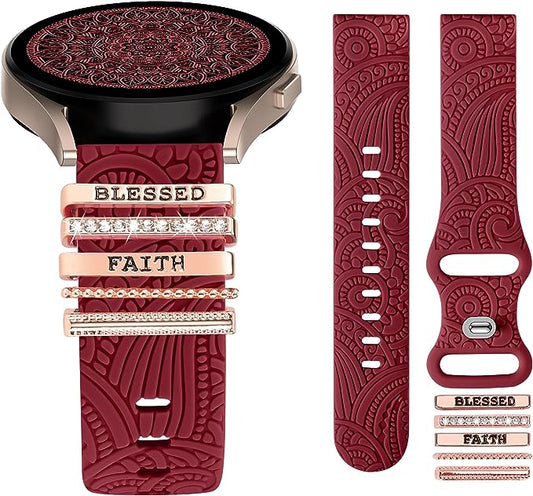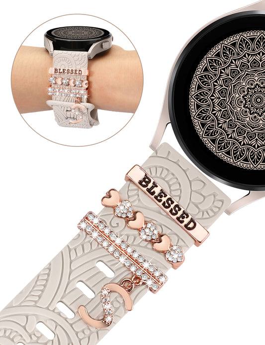 TOYOUTHS Decorative Ring Loop Compatible with Samsung Galaxy Watch 4 & 5 40mm 44mm Band Charms, Glitter Boho Engraved Silicone Straps for Watch 5 Pro/Watch 4 Classic/Watch 3 41mm/Active 2