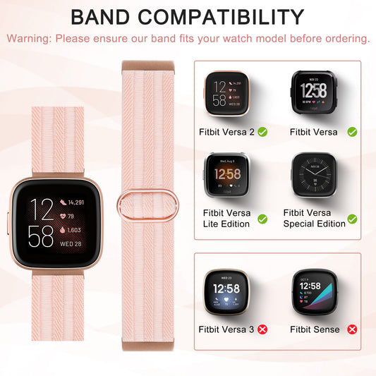 TOYOUTHS Compatible with Fitbit Versa/Versa 2 Bands for Women Men Adjustable Elastic Nylon Fabric Strap Replacement for Versa Lite Edition Stretchy Solo Loop Bracelet Wristband Accessories