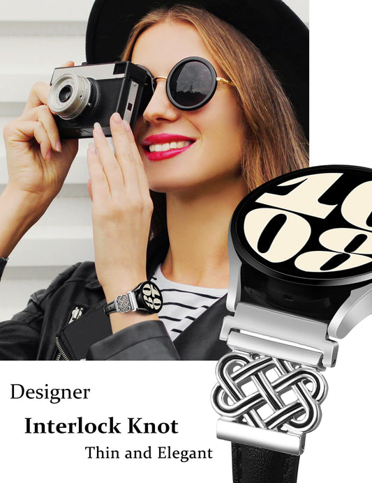 TOYOUTHS Leather Band Compatible with Samsung Galaxy Watch 7/6/5/4/Active 2 40mm 44mm Band Women, 20mm Dressy Slim Leather Strap with Celtic Heart-Shaped Knot Buckle for Watch 6 Classic/Watch FE