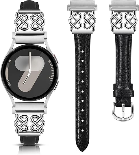 TOYOUTHS Celtic Knot Leather Band Compatible with Samsung Galaxy Watch 7 6 5 4 FE 40mm 44mm/Watch 6 Classic/Watch 5 Pro/Watch 4 Classic/Active 2/Watch 3 41mm Women, 20mm Slim Dressy Leather Strap