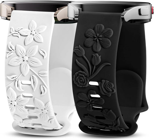 TOYOUTHS 2 Pack Rose Floral Engraved Bands Compatible with Samsung Galaxy Watch 7/6/5/4 Band 40mm 44mm, Women 20mm Silicone Dressy Embossed Flower Strap for Active 2/Watch 5 Pro/Watch FE