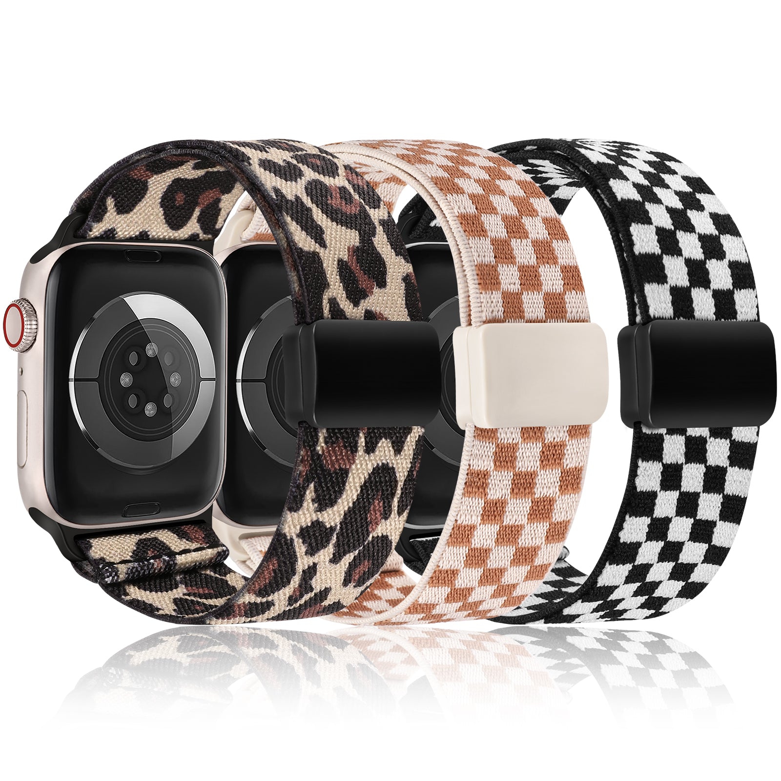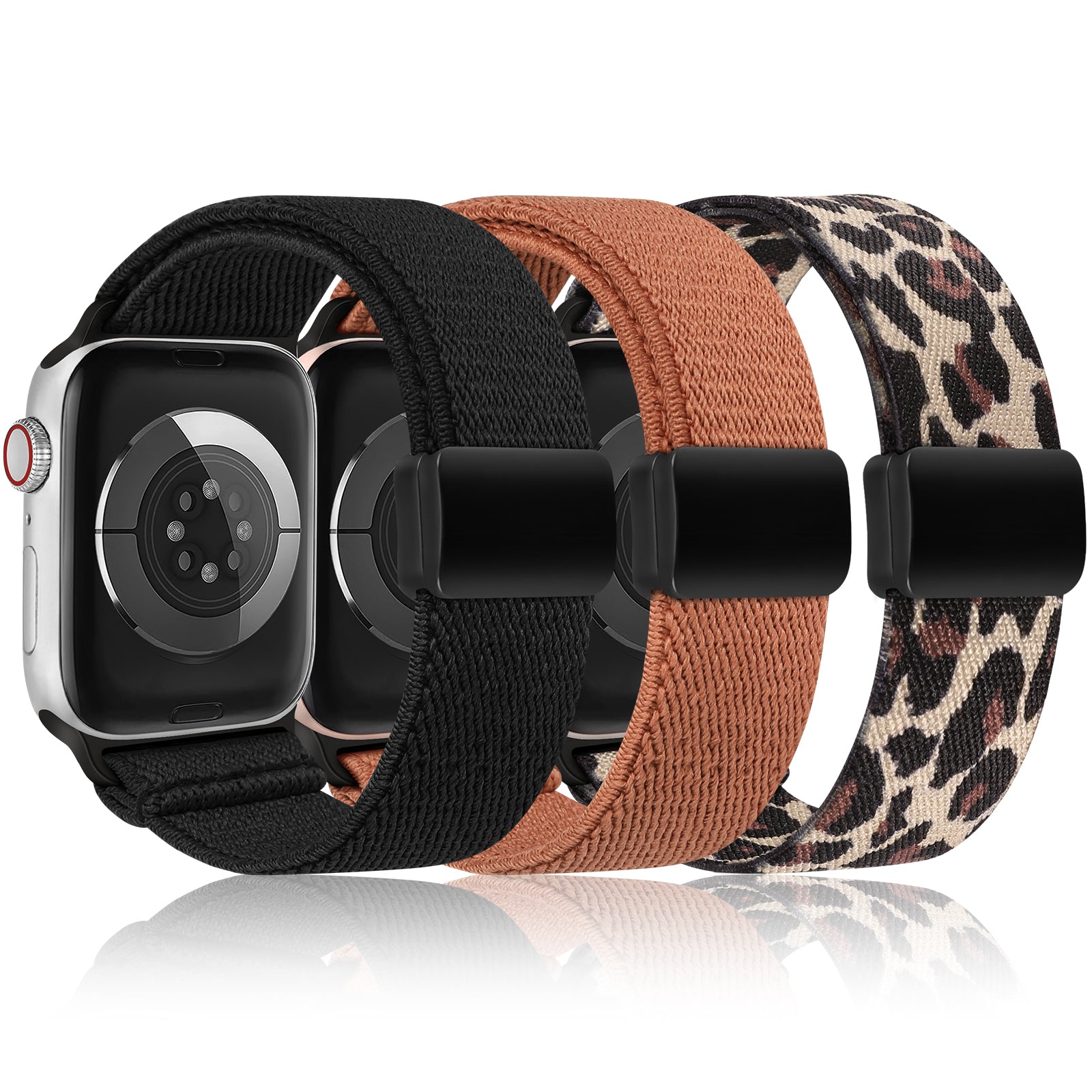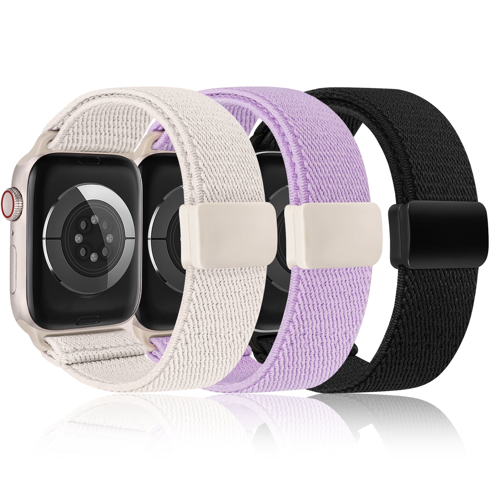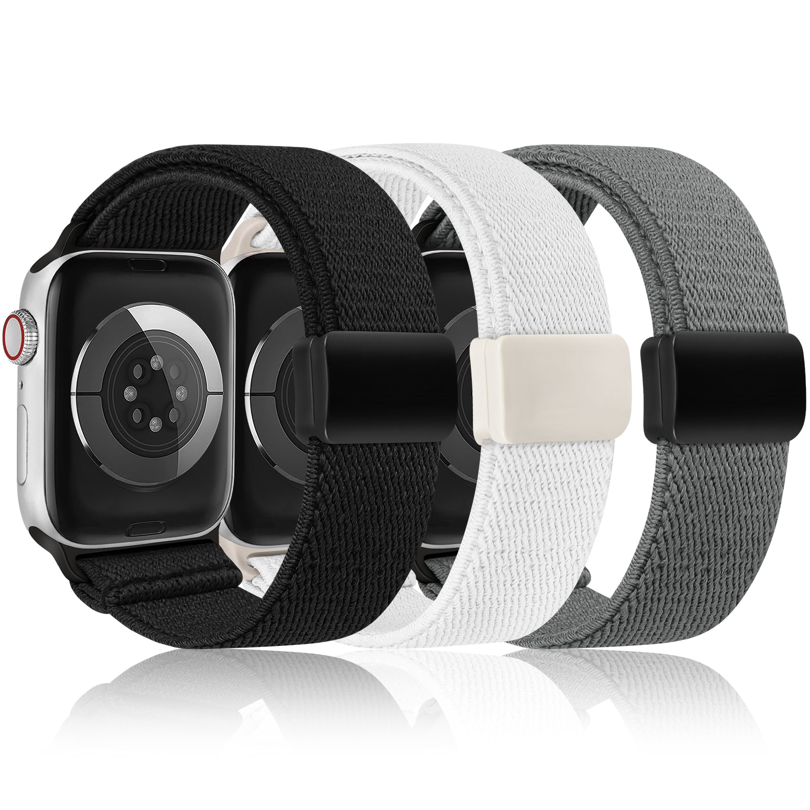 - Premium Stretchy Material: The 3 Pack Apple Watch 10 bands are made of nylon braided material, a ventilated design lets skin breathe, banishing sweat and discomfort, and keeps you cool and dry all day. Exquisite craftsmanship, skin-friendly, simple appearance, magnetic Clasp, matches many outfits, perfect for any occasion