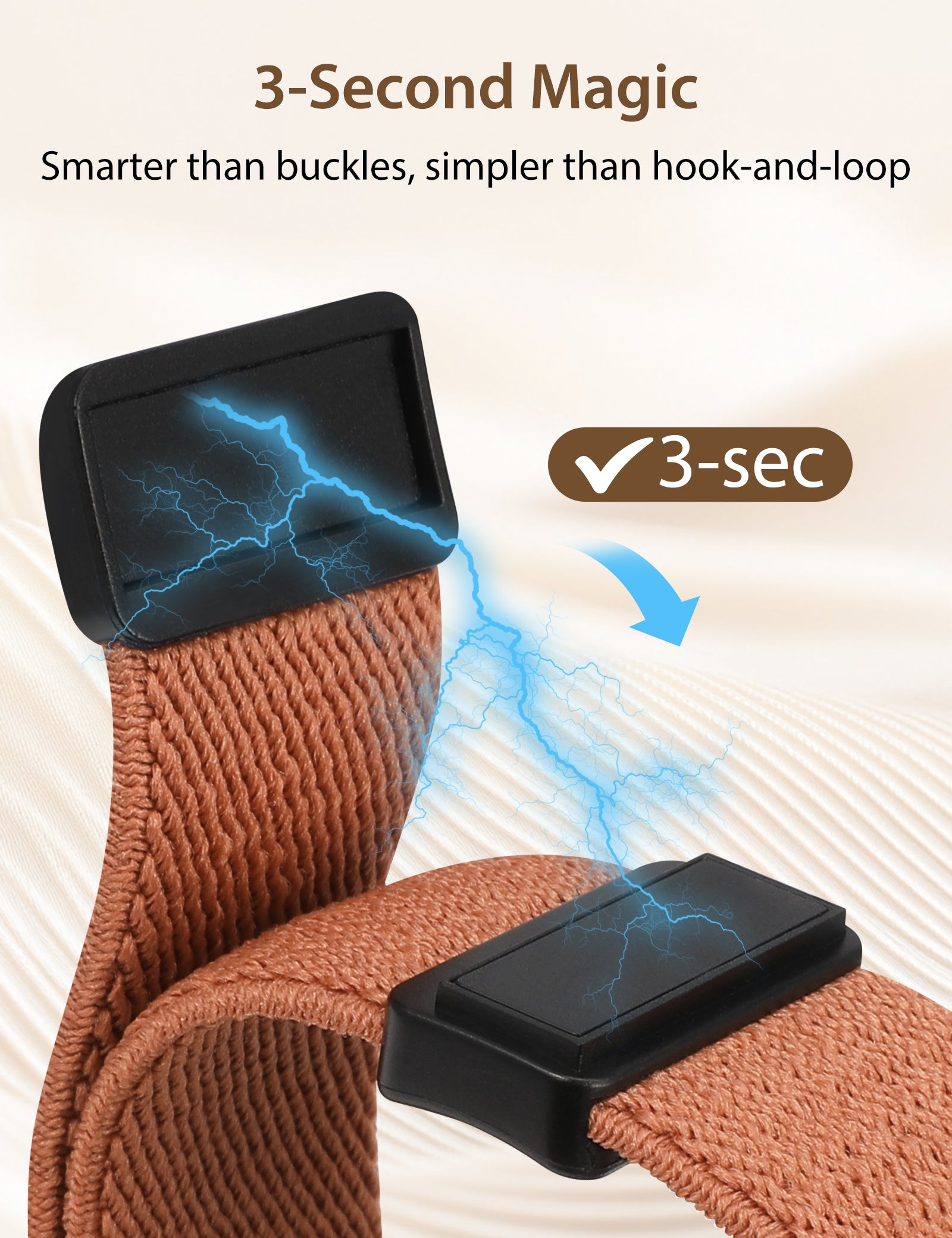 - Stretchy Band with Magnetic Clasp Design: The sport bracelet compatible with Apple Watch Bands for women combines a strong magnetic clasp. The magnetic clasp 3-second magic, smarter than buckles, simpler than hook-and-loop, feather light design eliminates all sense of weight, as if wearing nothing at all. Seamless comfort for 24/7 wear, with no pinching or stiffness