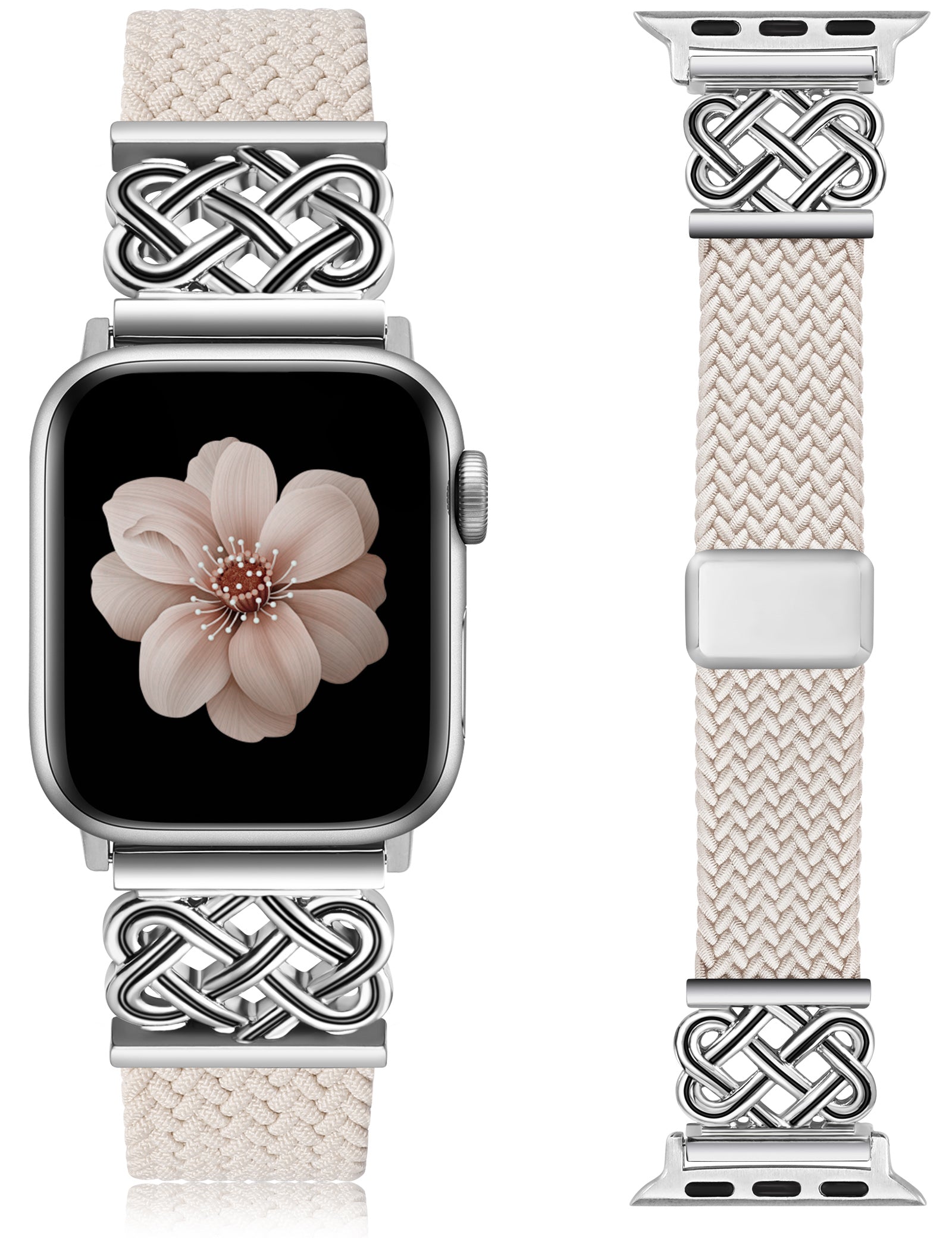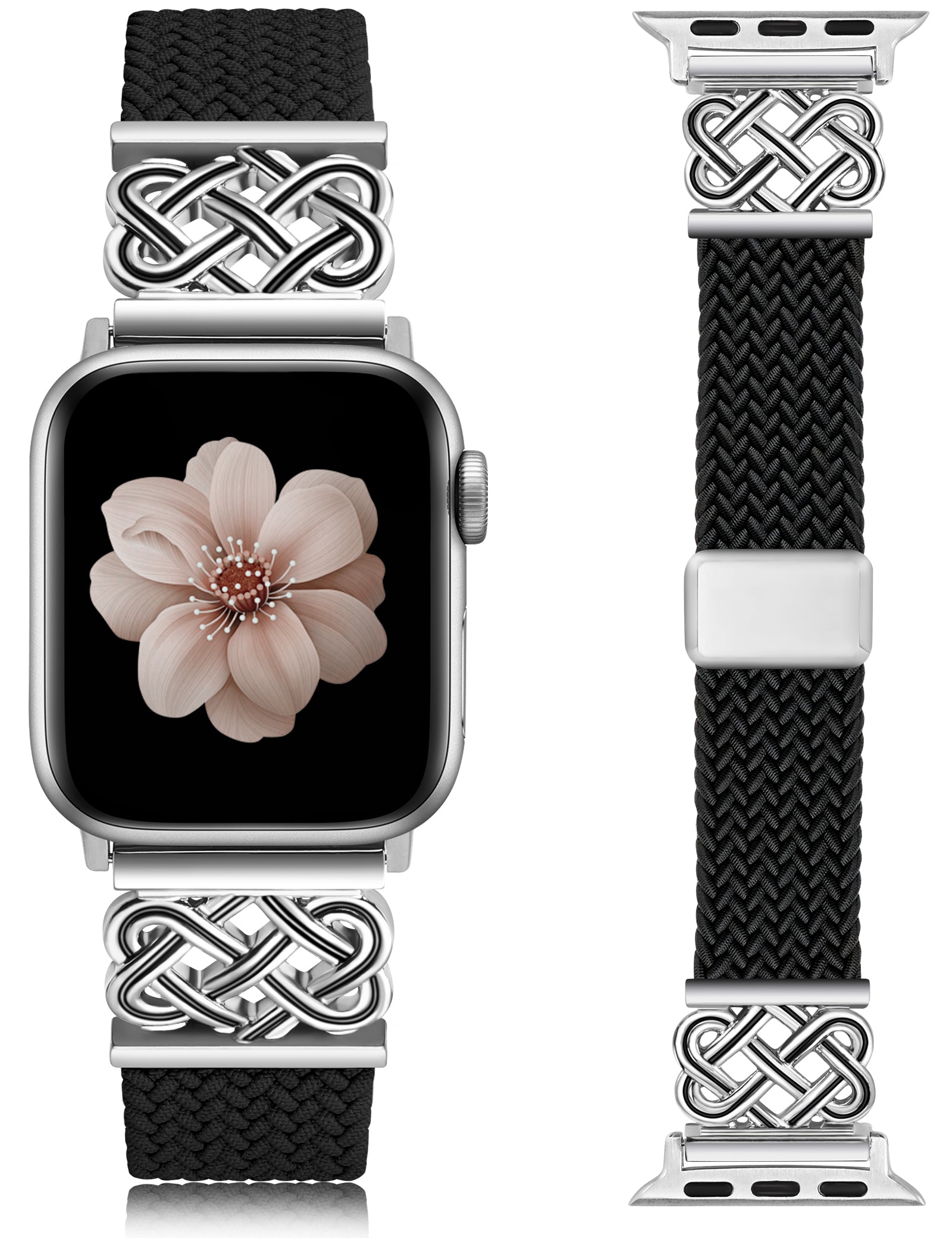 Braided Magnetic Band Compatible with Apple Watch Bands 38/40/41/42/44/45/46/49mm Women Men, Celtic Knot Stretchy Elastic Nylon Fabric Woven Strap for iWatch Series 11 10 9 8 7 6 5 4 SE/Ultra 3 2 1