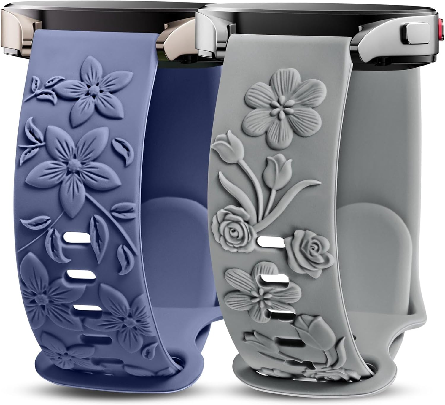 • Premium Material: The Galaxy Watch 7 bands are made of silicone material that is soft and smooth with a matte finish, nicely flexible to go around the wrist, and be comfortable; With a raised floral pattern on each that isn't too showy, and more subtle, the attention to detail of the flowers is amazing with a nice choice of colors to match many outfits