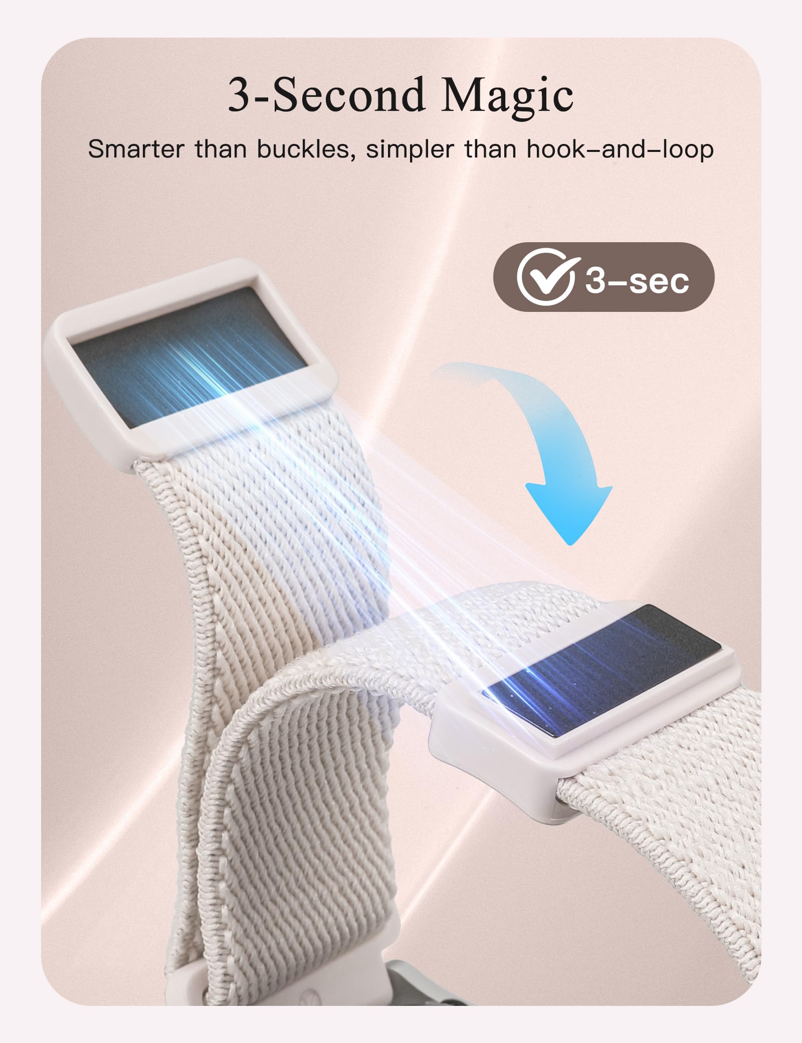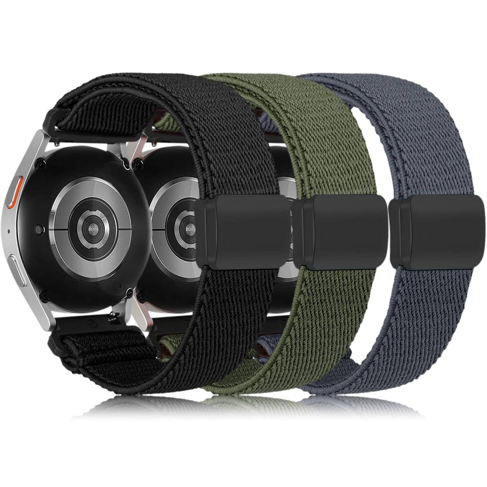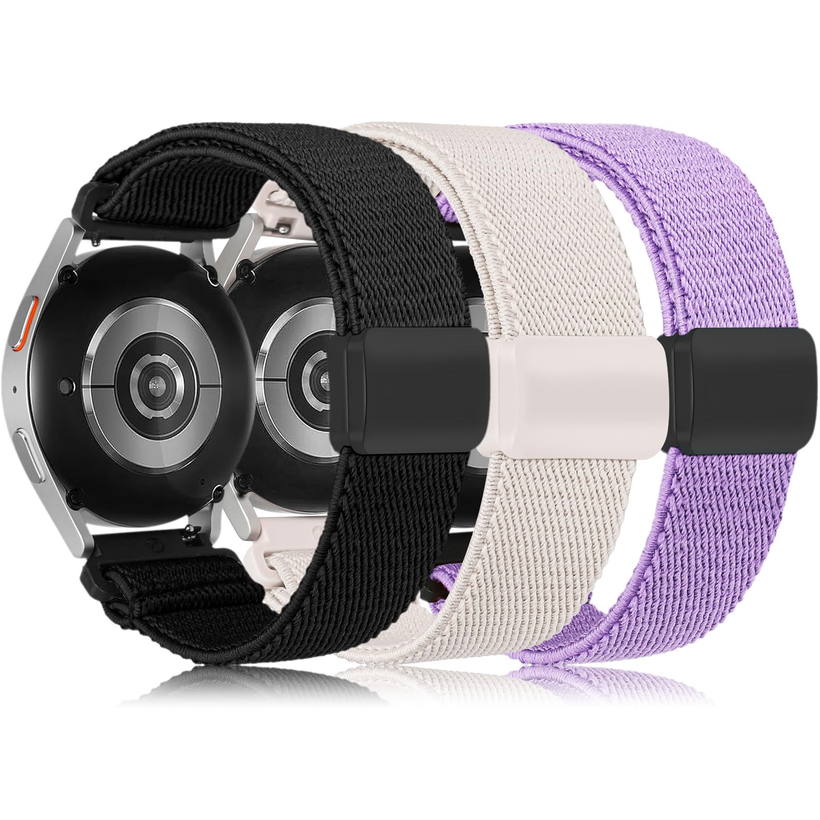 - Premium Stretchy Material: The 3 Pack Galaxy Watch 7 bands are made of nylon braided material, a ventilated design lets skin breathe, banishing sweat and discomfort, and keeps you cool and dry all day. Exquisite craftsmanship, skin-friendly, simple appearance, magnetic Clasp, matches many outfits, perfect for any occasion