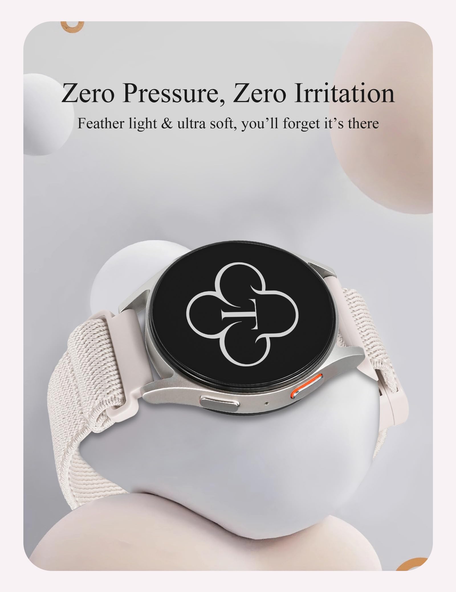 - Compatible Size: The elastic band is compatible with compatible with Samsung Galaxy Watch 7/6/5/4/Active 2/FE 40mm 44mm/Galaxy Watch 6 Classic 47mm 43mm/Galaxy Watch 5 Pro 45mm/Galaxy Watch 4 Classic 46mm 42mm/Watch 3 41mm and other smartwatch with 20mm band width with lugs; Fits wrists size 5.2"-8.0"(132mm- 203mm). Perfect for any Wrist, any Occasion, ensuring comfort for all. Seamless transition, from workouts to workdays, sleep to nights out