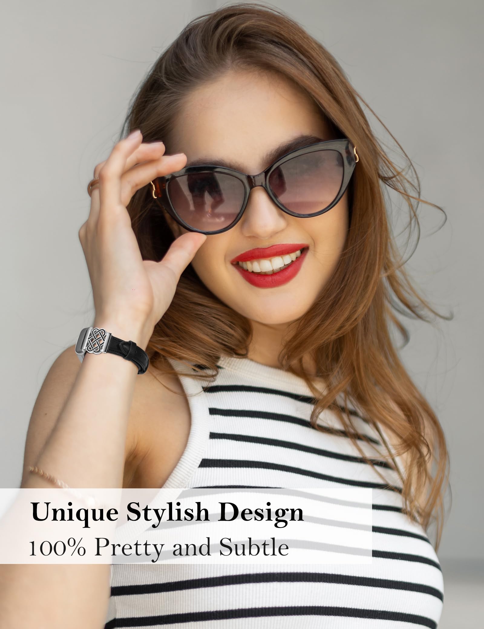 - Patent Designer Celtic Knot Interlock Buckle: The slim leather watch bands for women are thin and narrow, featuring a dressy celtic knot, making it not only a slimline shape to highlight your elegance but also a fancy stylish look to show your great taste. The celtic knot is a new design, symbolizing luck and eternity, and is a fusion of past and current, a fusion of classic and fashion