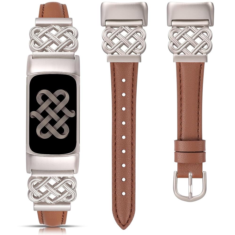TOYOUTHS Celtic Knot Leather Band Compatible with Fitbit Charge 6/Fitbit Charge 5 Band Women, Slim Dressy Thin Designer Premium Leather Strap with Interlock Buckle for Fitbit Charge 6/5 Smartwatch