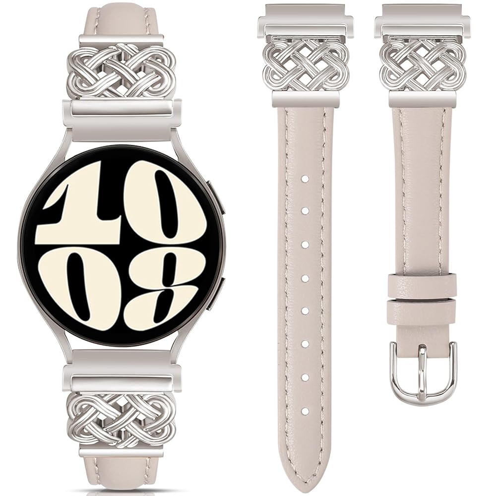 TOYOUTHS Celtic Knot Leather Band Compatible with Samsung Galaxy Watch 7 6 5 4 FE 40mm 44mm/Watch 6 Classic/Watch 5 Pro/Watch 4 Classic/Active 2/Watch 3 41mm Women, 20mm Slim Dressy Leather Strap