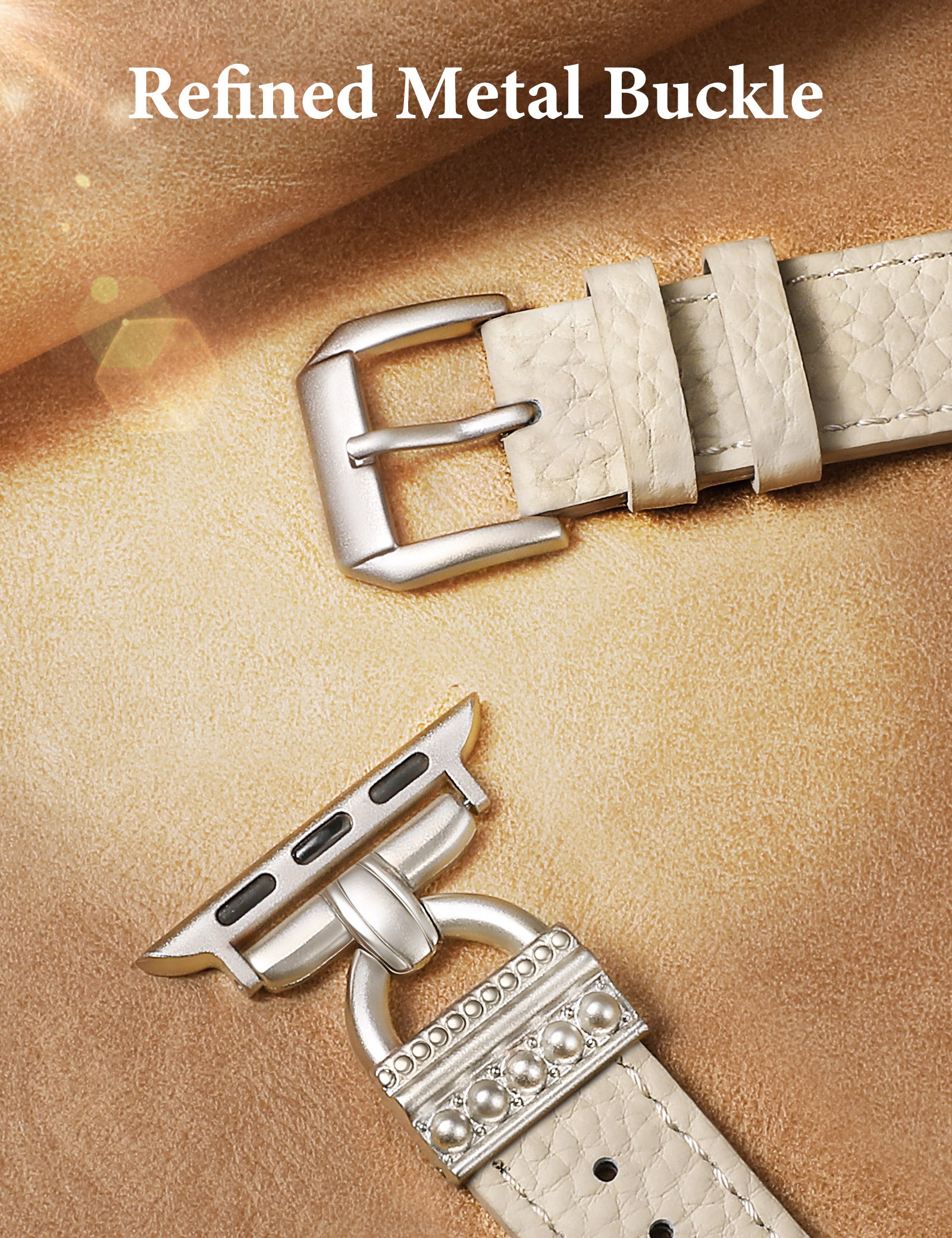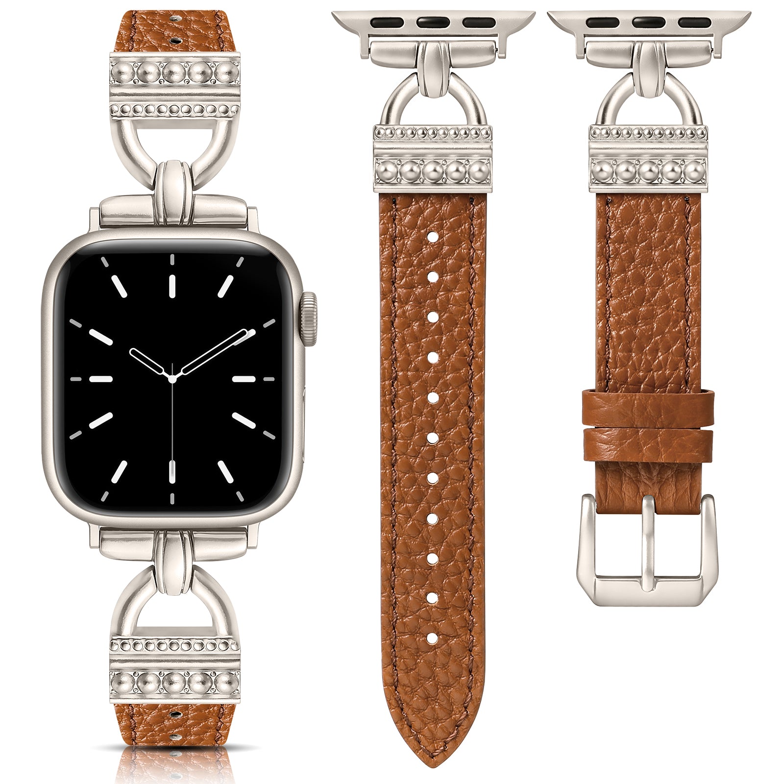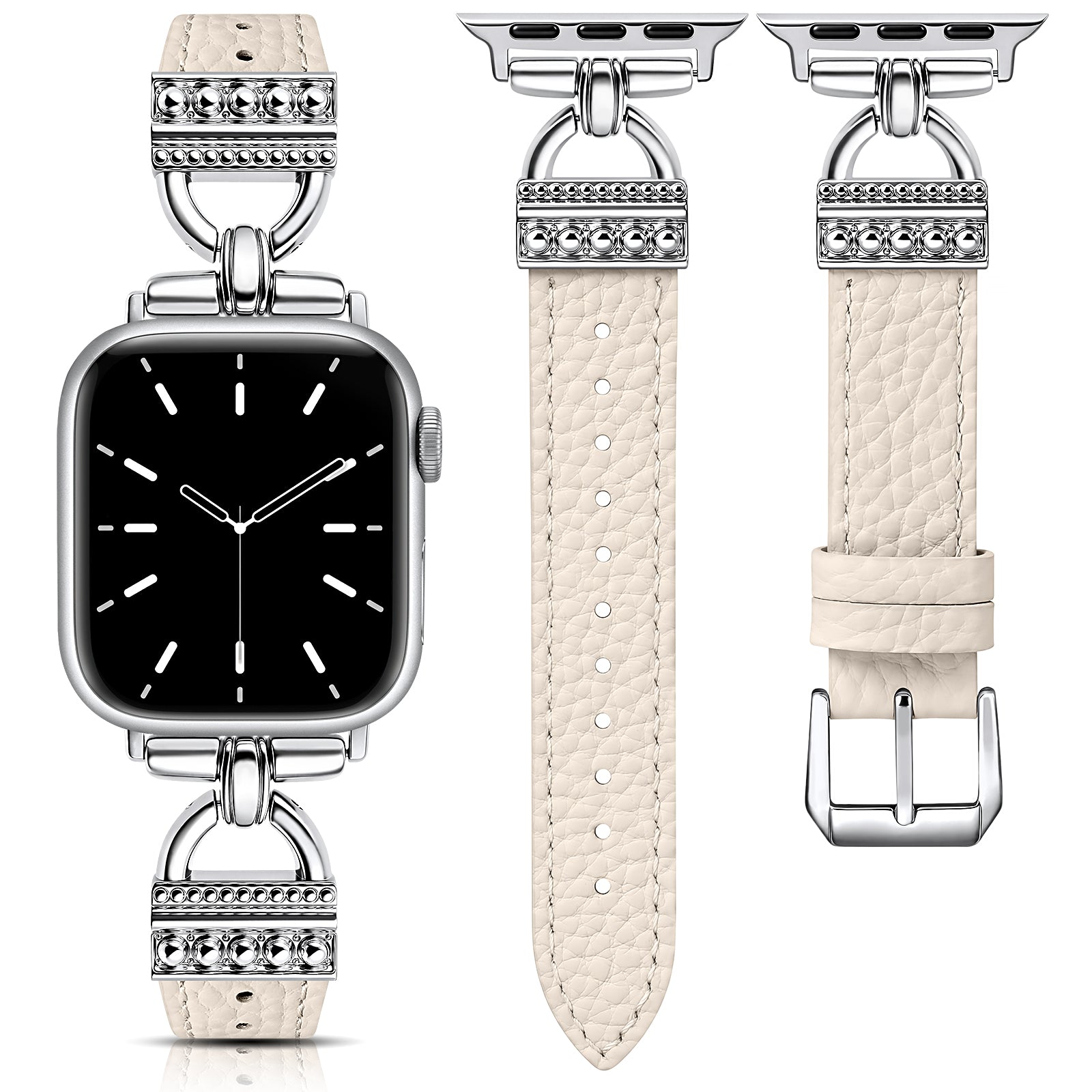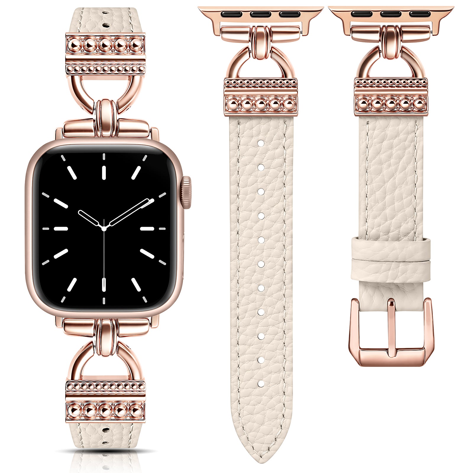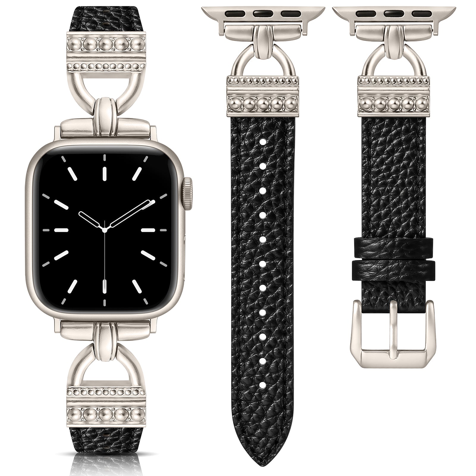 - Timeless Style with D-Shaped Accents: Features classic D-shaped metal buckles that bring a vintage, jewelry-inspired feel to your Apple Watch. The sleek, structured lines offer an elevated look, making this iwatch band for women a refined choice for both casual and formal outfits