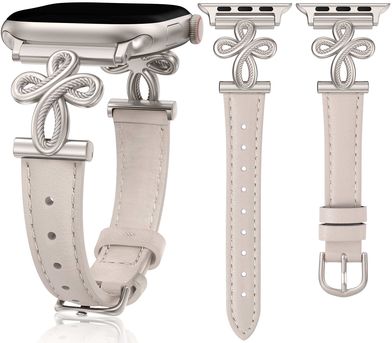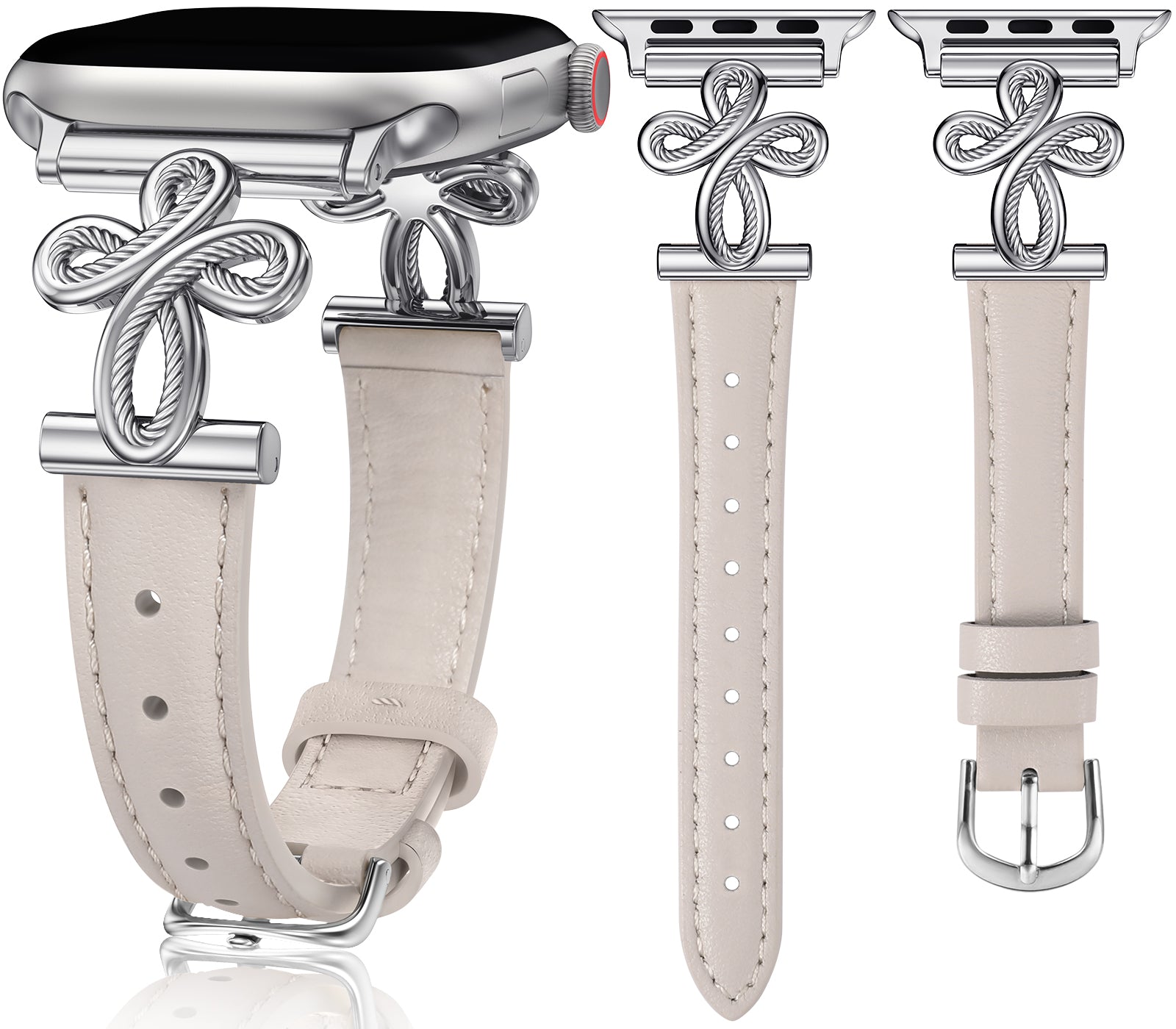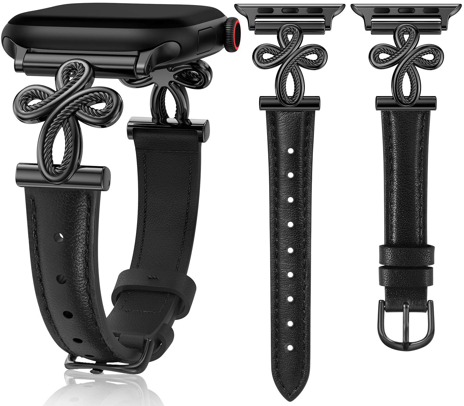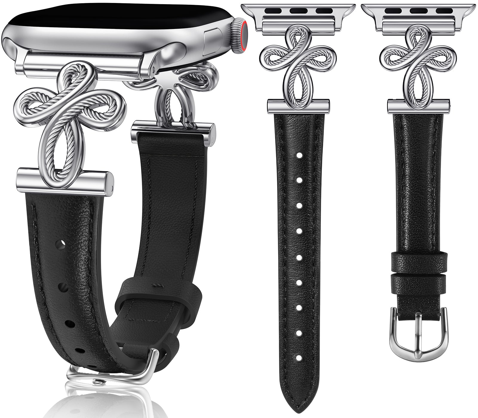 TOYOUTHS Slim Leather Band Compatible with Apple Watch Bands 42/41/40/38mm Women, Top Grain Genuine Celtic Knot Cross Dressy Thin Fashion Strap for iWatch Series 10/9/SE/8/7/6/5/4/3/2/1